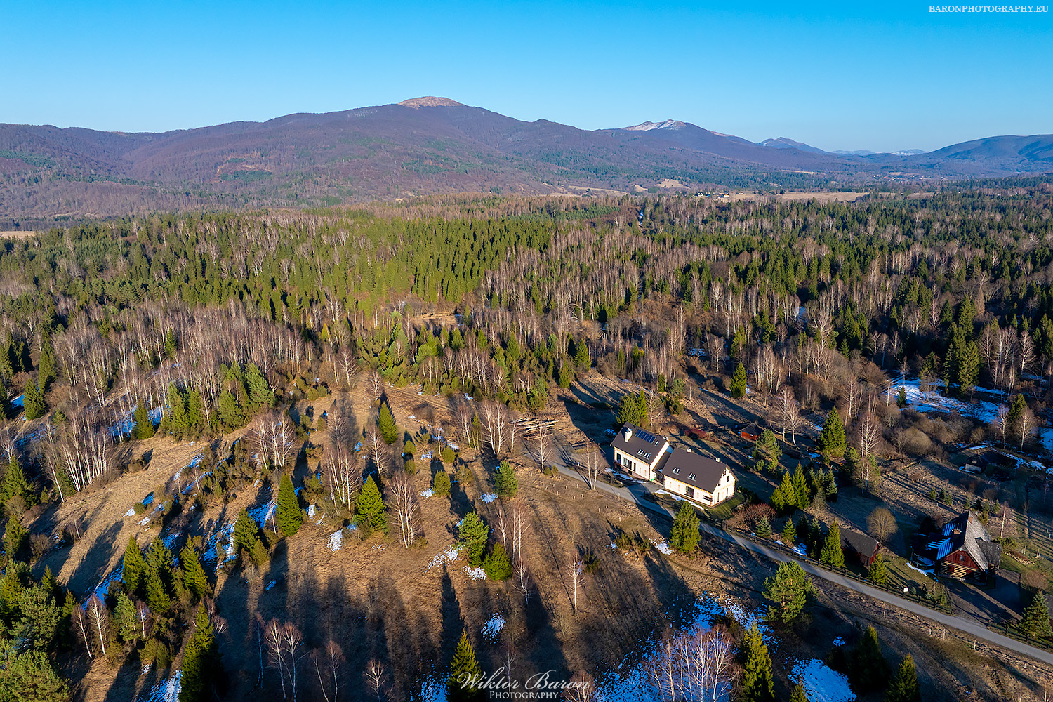 Fotografia wykona przy użyciu drona DJI Phantom 4 Pro. Zdjęcie przedstawia krajobraz górski w Piwnicznej Zdroju